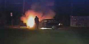 Un policier sauve un conducteur coincé dans son véhicule en feu