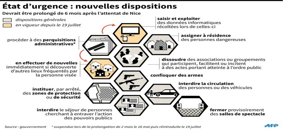 Une prolongation de trois mois avait été décidée par François Hollande quelques heures après l’attaque au camion, revendiquée par l’organisation Etat islamique, ayant fait 84 morts et 300 blessés le 14 juillet à Nice sur la Promenade des Anglais.