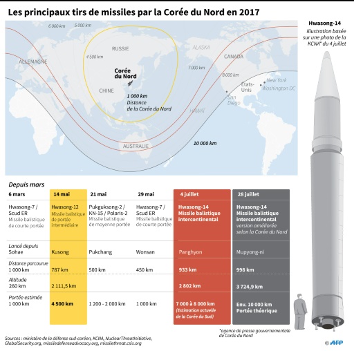 Ce nouveau tir nord-coréen survient après un premier test réussi, le 4 juillet, d’un missile intercontinental. Des experts estiment que le second missile serait significativement plus puissant.
