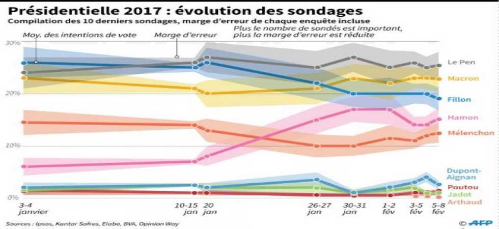 En quinze jours, depuis la première une du Canard enchaîné mettant en cause le travail de sa femme et de ses enfants comme assistants parlementaires, M. Fillon, grand favori de la présidentielle après sa victoire à la primaire en novembre, serait désormais éliminé dès le premier tour, selon les mêmes sondages et remplacé par Emmanuel Macron face à Mme Le Pen.