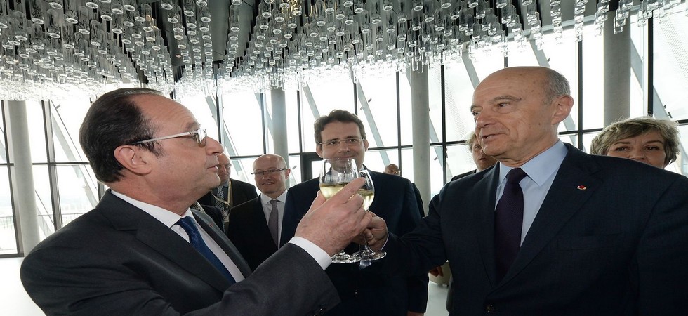 Le président François Hollande a inauguré mardi à Bordeaux la Cité du vin au côté du maire de la ville, Alain Juppé, une visite que des opposants à la loi travail ont tenté, sans succès, de perturber par une manifestation et une coupure de courant.