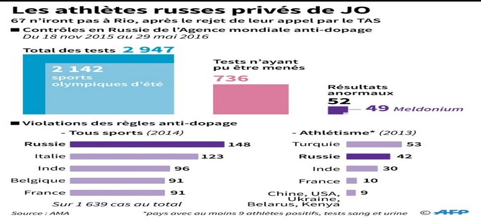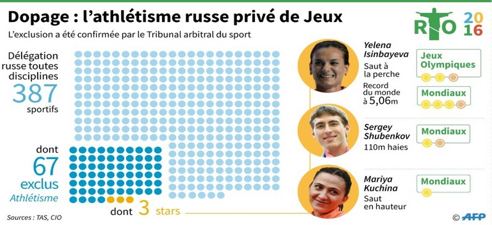 JO-2016/Dopage: combien de sportifs russes à Rio? Début de réponse par le CIO dimanche
